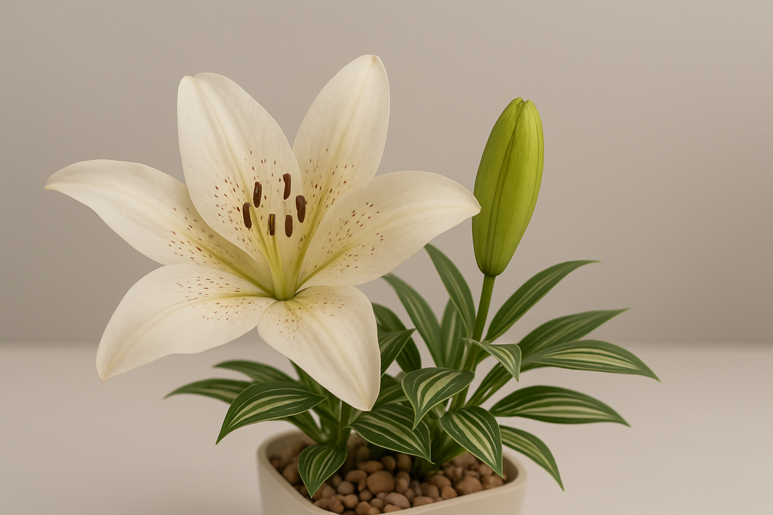 Artificial White Lily Plant in Pot