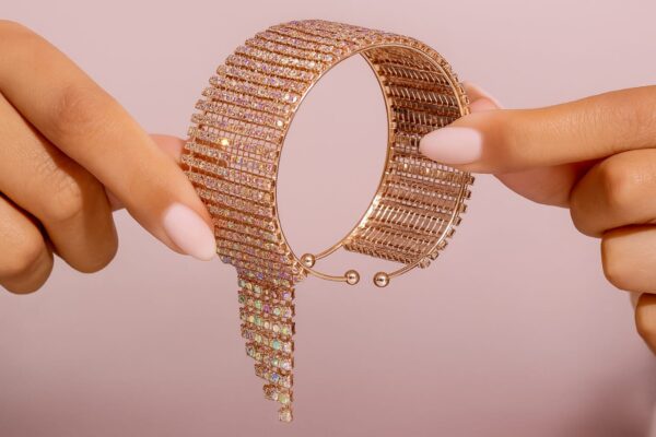 Finish: Rose-gold tone with shimmering crystal fringe