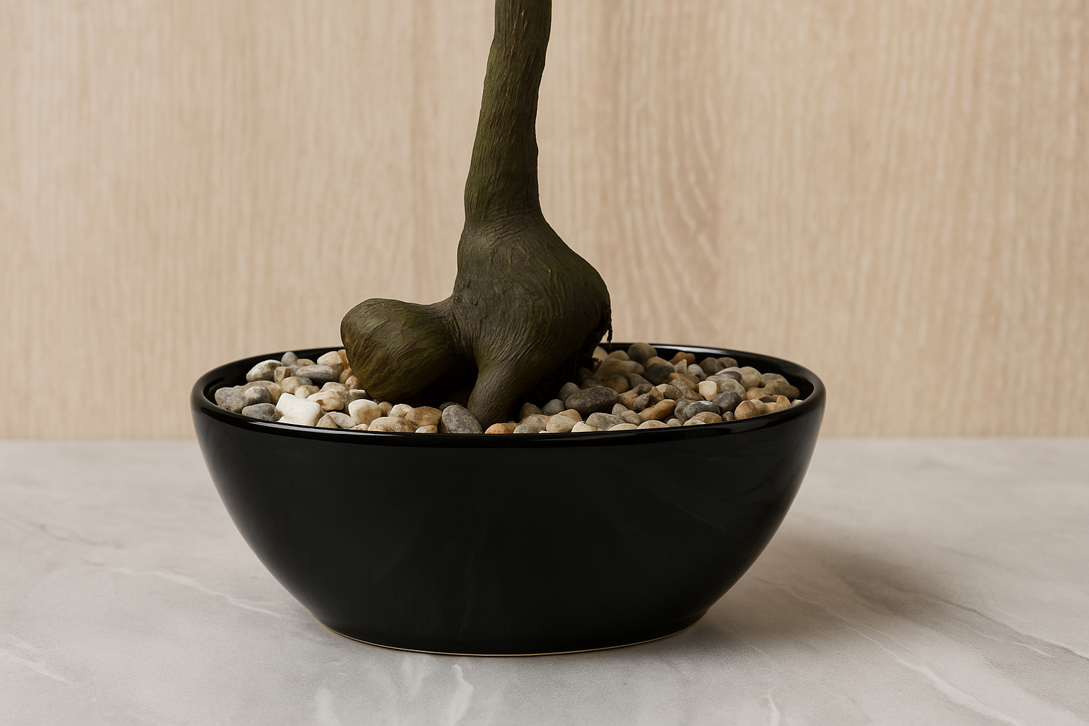 Bring serenity and style to your space with this Elegant Miniature Bonsai Tree, beautifully placed in a sleek black ceramic pot. Featuring vibrant dual-tone foliage—lush green and soft red—this decorative piece mimics the beauty of real bonsai with zero maintenance. Accented with natural river pebbles, it makes a perfect centerpiece for your desk, shelf, or coffee table.