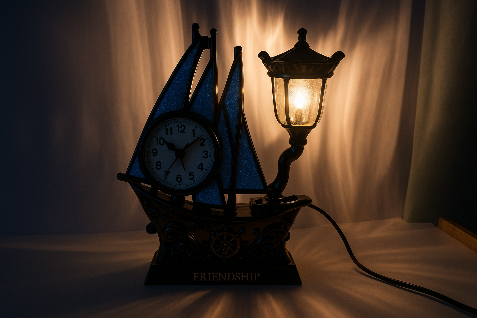 Friendship Ship Table Clock with Lantern Design – Decorative Showpiece