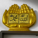 Enhance your spiritual ambiance with this stunning Golden Islamic Wall Hanging, featuring a symbolic pair of open hands in prayer holding a holy script with beautifully inscribed Arabic calligraphy of “Allah” and “Muhammad (PBUH)”. The radiant golden finish and intricate design represent peace, faith, and reverence.