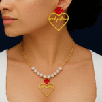 Celebrate love and passion with the Heartbeat of Love Jewelry Set, a stunning blend of symbolism and elegance. Featuring a bold heart-shaped pendant and matching earrings with an engraved heartbeat motif, this set is accented by radiant red gemstones and lustrous pearls. The gold-toned finish adds warmth and richness, making it a perfect choice for romantic occasions, gifts, or statement looks that speak from the heart.