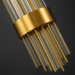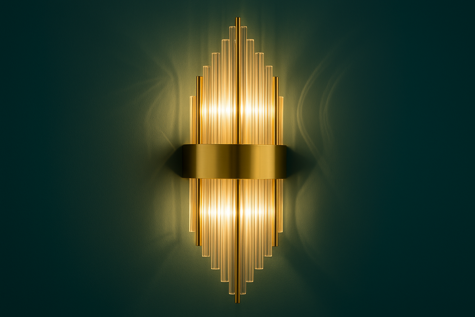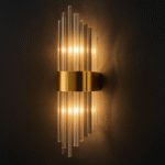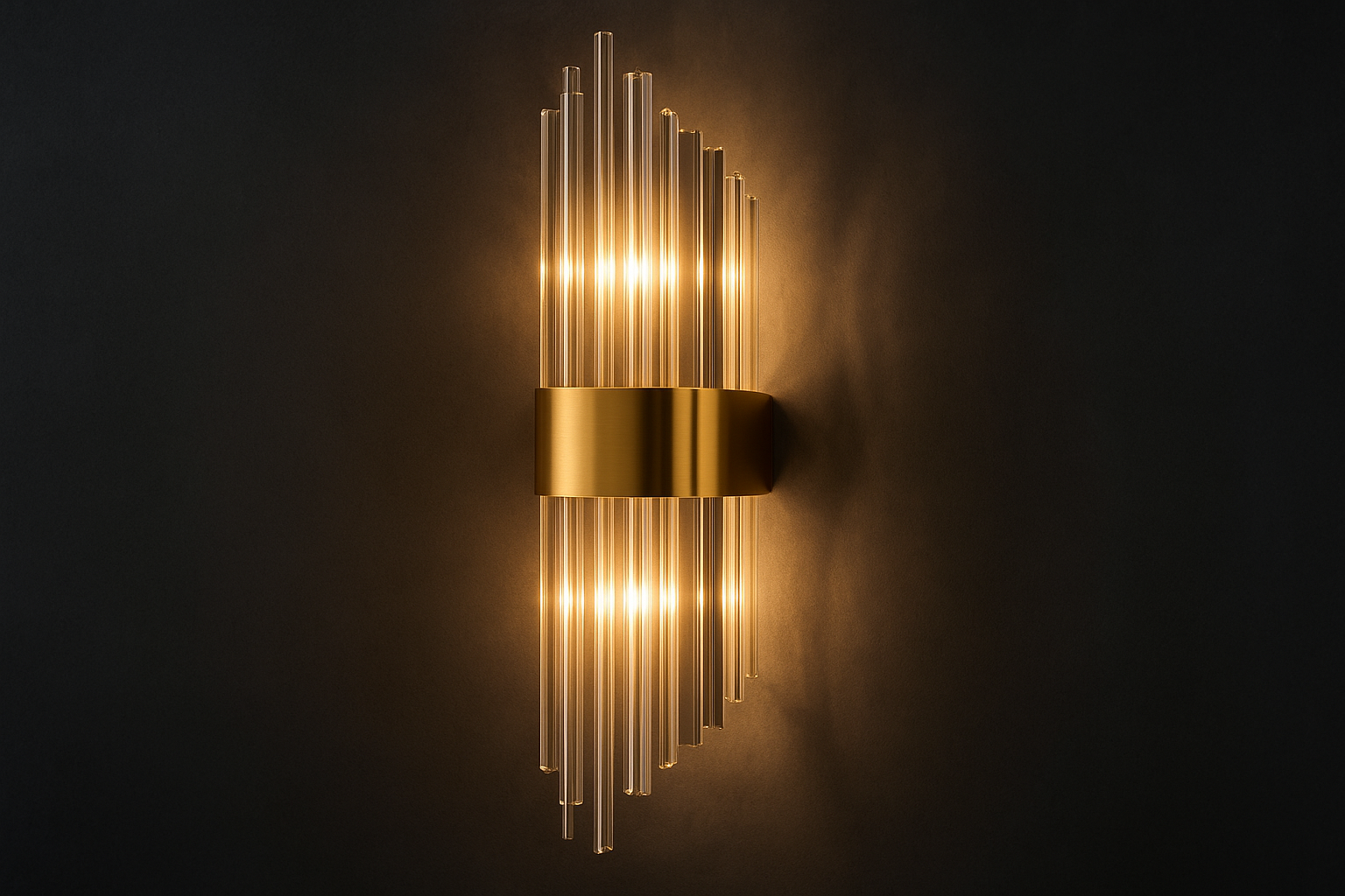 Elevate your interiors with the sophisticated charm of the Luxe Art Deco Wall Sconce. Featuring cascading golden glass tubes and a sleek metallic gold band, this ambient wall light exudes elegance and glamour. Perfect for hallways, living rooms, or upscale commercial spaces, it combines vintage design with modern luxury to create a warm, radiant glow.