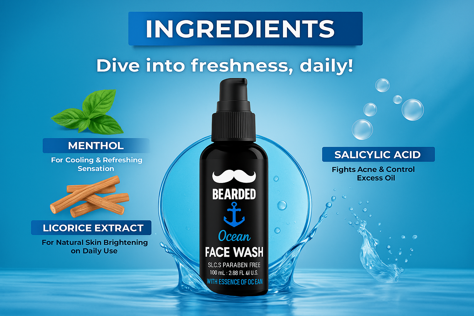 Muuchstac Ocean Face Wash is a refreshing cleanser infused with the essence of the ocean, designed for deep cleansing and revitalization of men’s skin. SLS and Paraben Free, this 100ml face wash is gentle on the skin while effectively removing dirt, oil, and impurities. Perfect for daily use, it provides a cool, ocean-fresh feeling that leaves your face clean and energized.