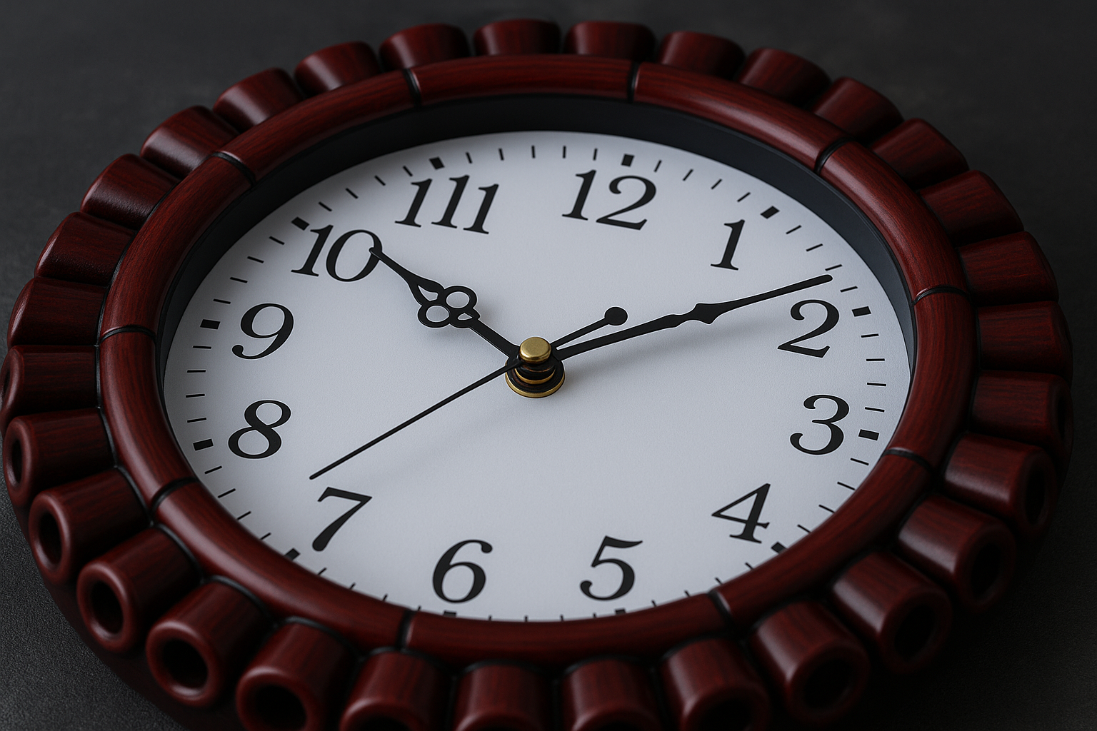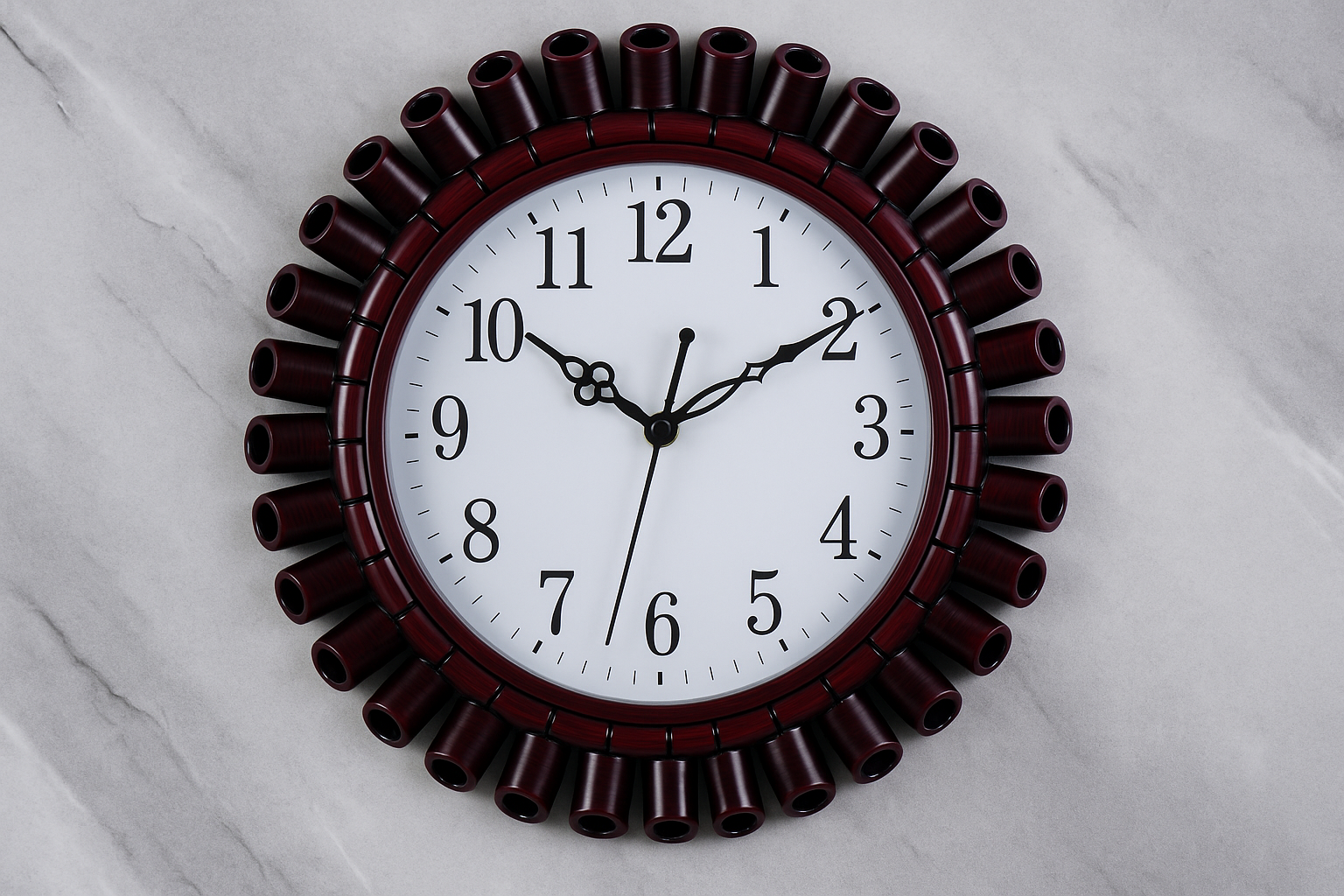 Add a touch of rustic charm to your home with this Vintage Round Wooden Wall Clock. Featuring a bold circular frame with a unique carved tube-like design in rich mahogany wood finish, this clock combines traditional craftsmanship with classic appeal. The clear white dial with elegant black numerals ensures easy time reading, while the ornamental hands add a refined look. Perfect for living rooms, study areas, or hallways, this wall clock is both a timepiece and a statement décor item that enhances any interior with warmth and character.